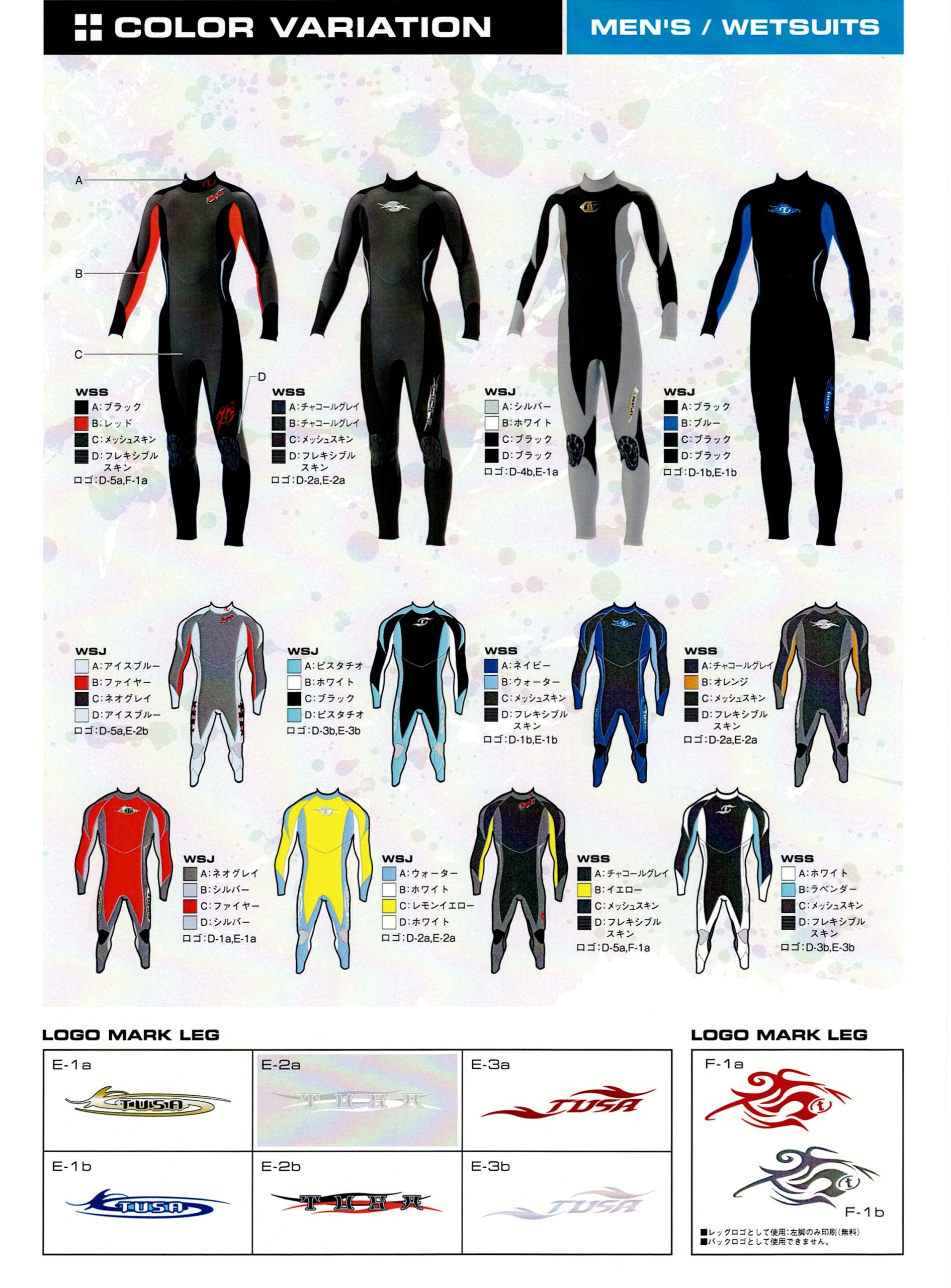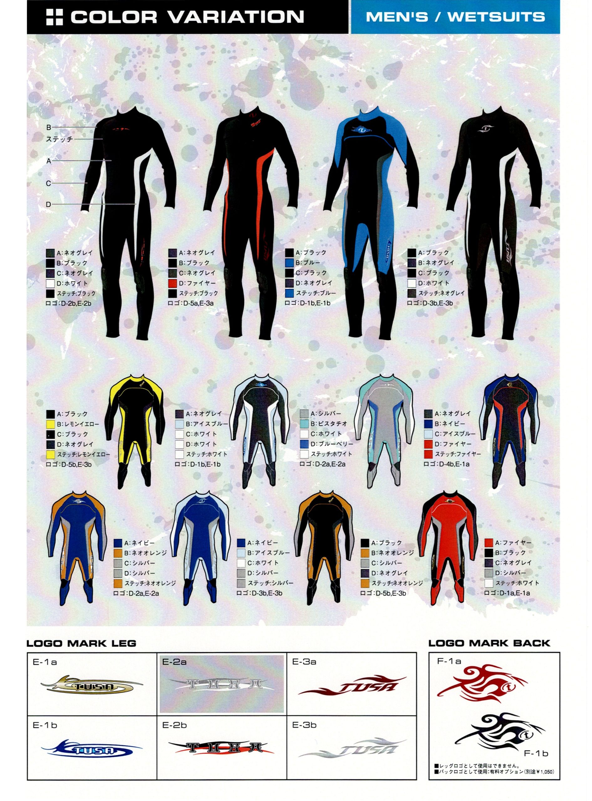 【サンプル】TUSA ウエットスーツ カラーパターン - 【PADI表彰店】ダイビングスクールココモ 姫路 - 地域最大。店内プール・無料駐車場完備。